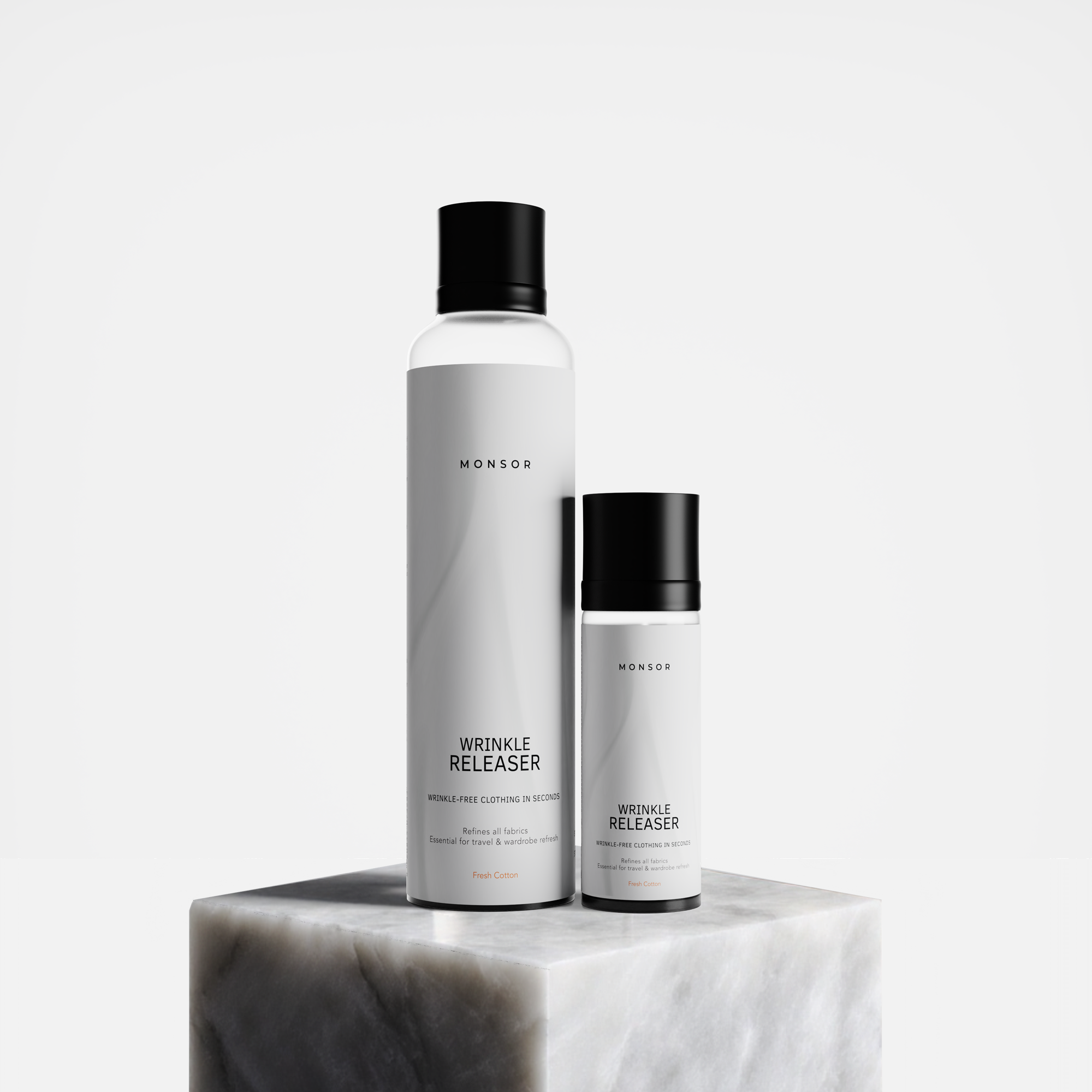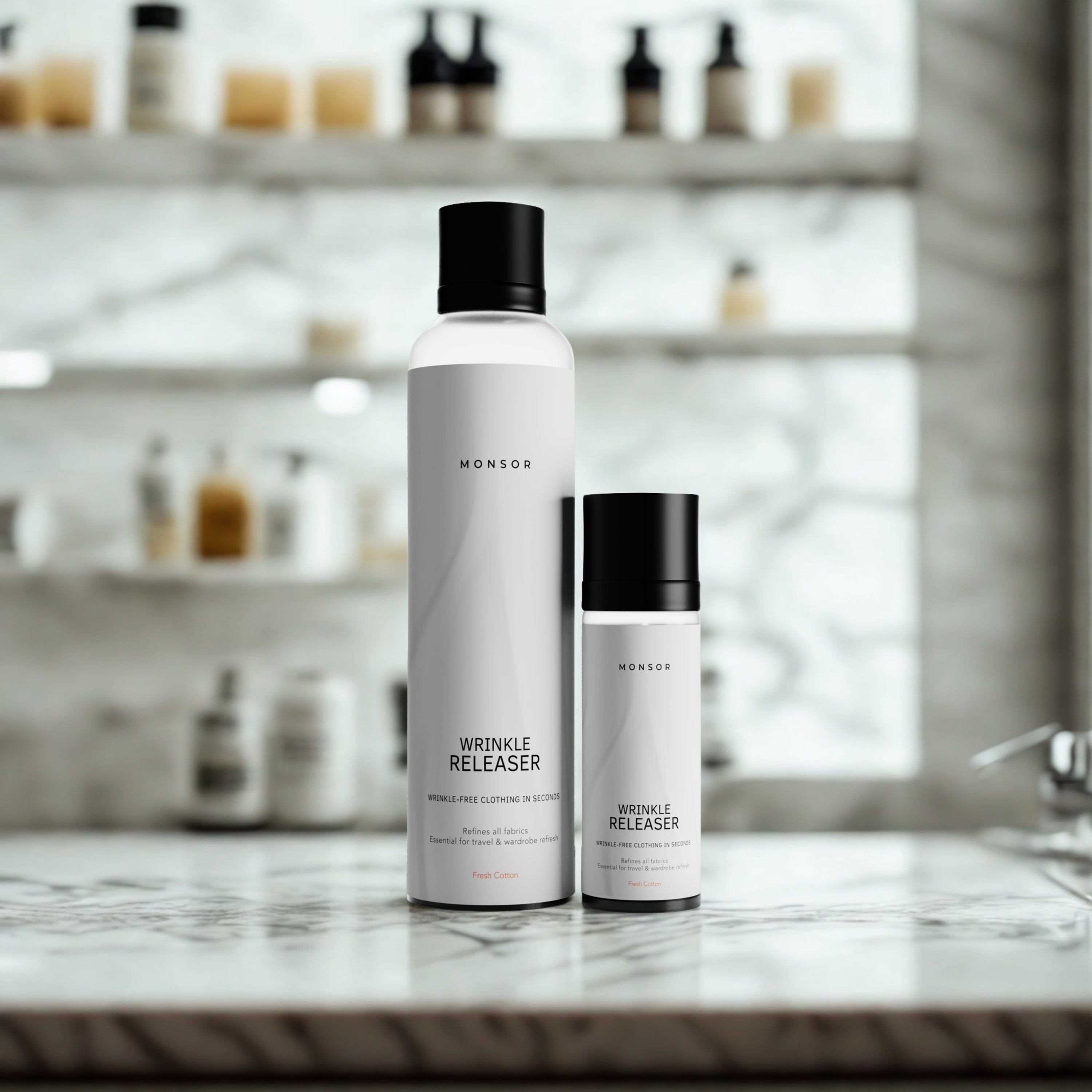 Ein gebrauchsfertiges Anti-Falten-Spray, das Kleidung auffrischt und Falten glättet, ohne dass Bügeln erforderlich ist.